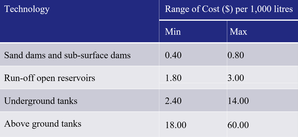 Table 1: The relative cost, per 1,000 litres, for different water technologies. Source